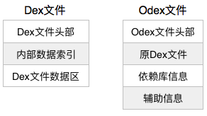 为了保证原Dex文件的数据安全与优化机制的独立性,优化机制重新创建一个.Odex文件,主要包括依赖库关系、寄存器映射关系以及类的索引关系。