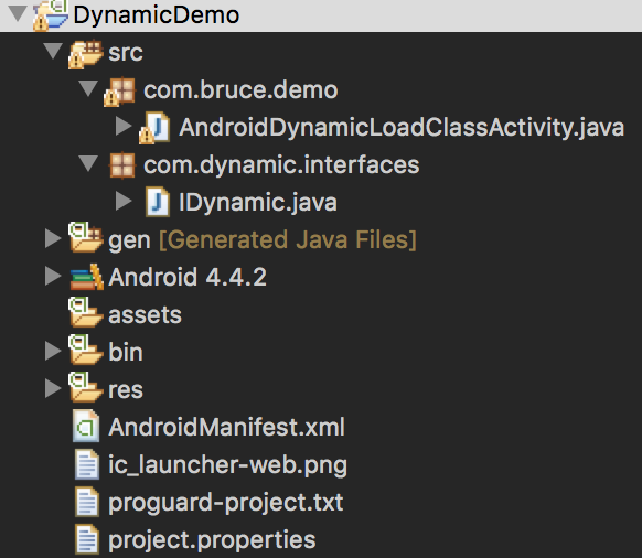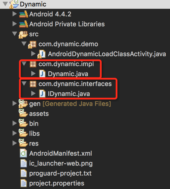同样的方法只打包接口类IDynamic.java,得到dynamic_int.jar,不用dx处理,第三步中会用到。