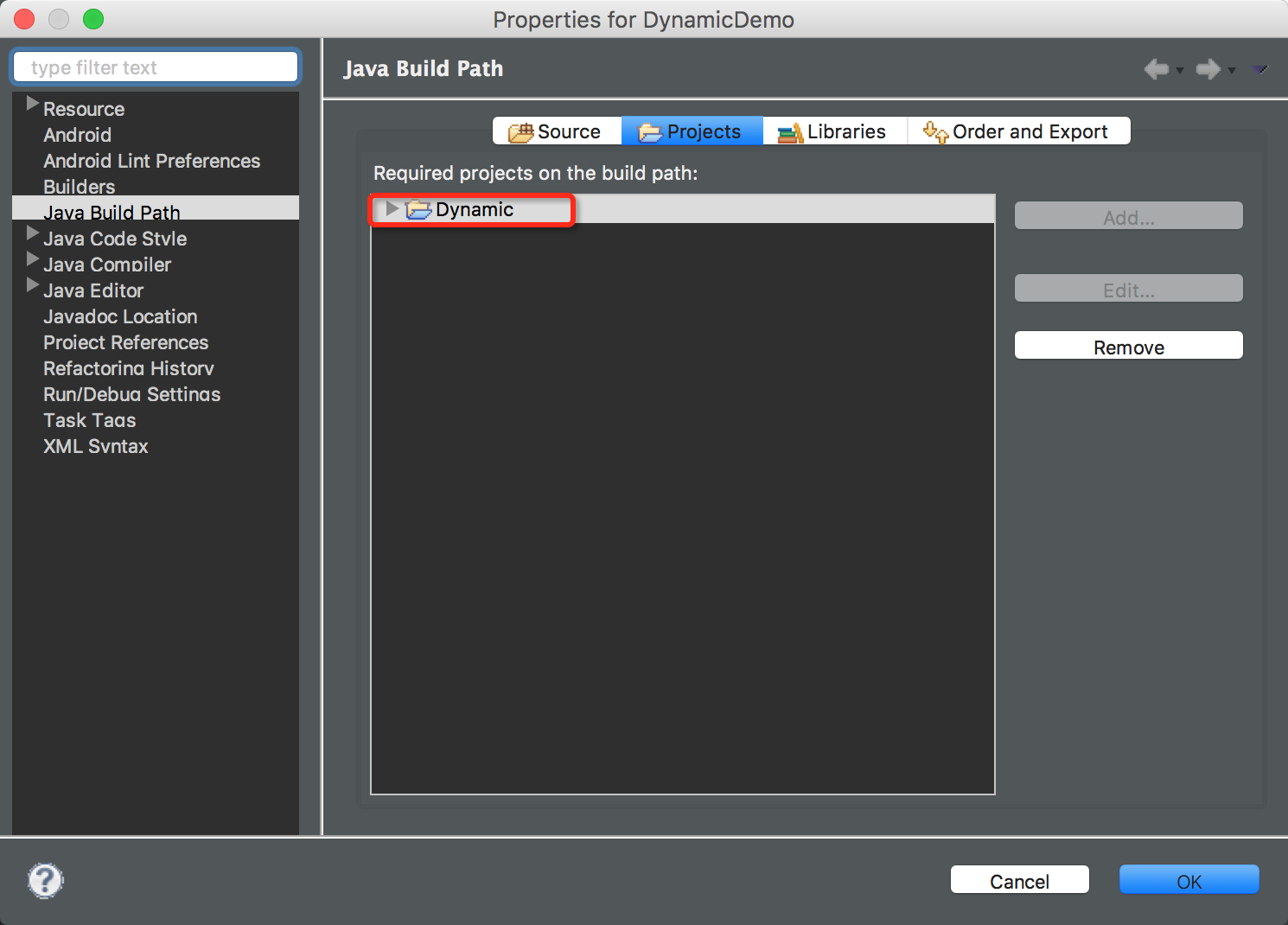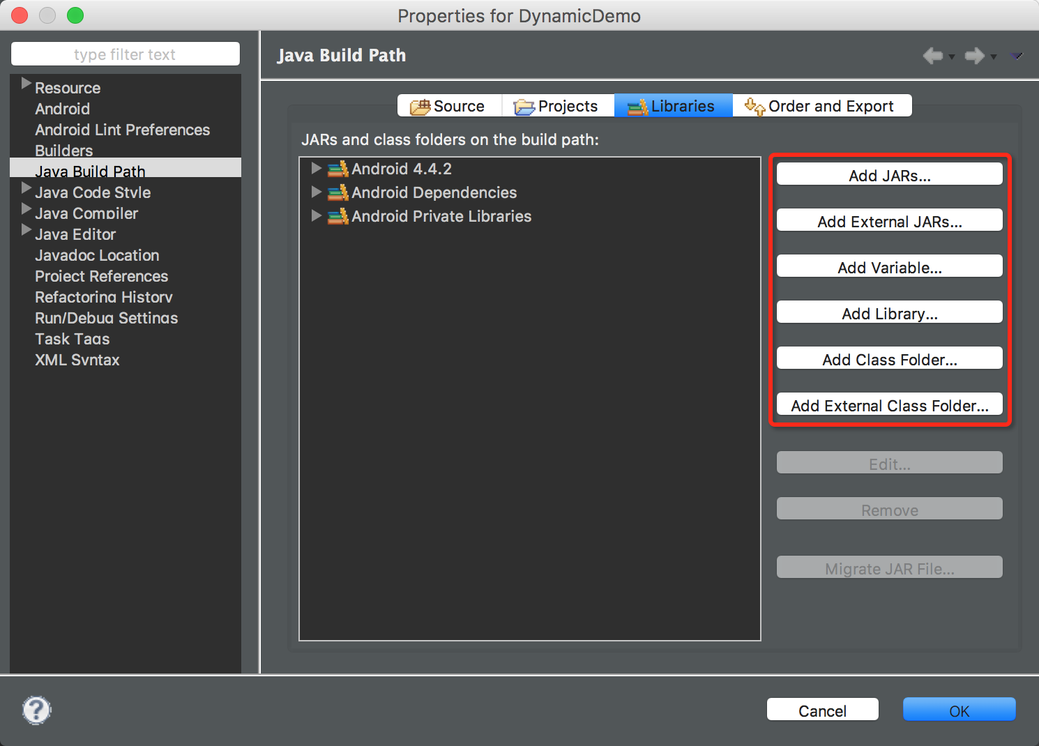 com.dynamic.interfaces这个包是从Dynamic项目中剪切过来的,同时要在Dynamic项目中新建一个lib文件夹,将dynamic_int.jar文件拷进去,然后右键dynamic_int.jar->Build Path->Add to Build Path,后面会说为什么要这么做。