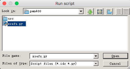 点击File->Script file加载刚才编写的脚本: 加载之后就可以在IDA下方的IDAPython插件中使用脚本中定义的函数了,比如我们要查看0x401D0B处一个readn函数在哪里调用过: