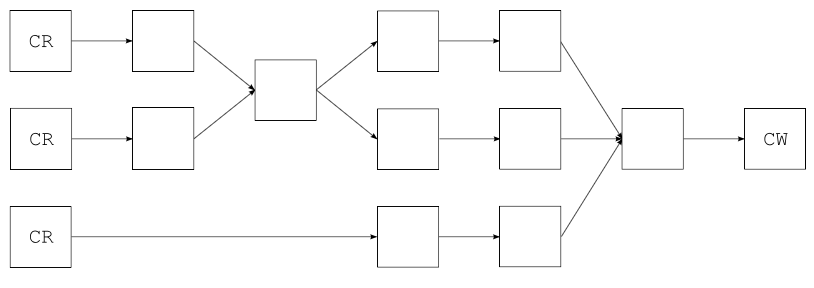 基于事件模型的ASM工具使用生产者-消费者模型转换/产生一个class文件。其转换过程中涉及到自定义的事件生产者,自定义的事件过滤器和自定义的事件消费者这三种组件。其中使用ClassReader来解析每一个class文件中的事件元素;使用自定义的各种基于方法/变量/声明/类注释的元素适配器来过滤和修改class事件元序列中的相应事件对象;最后使用ClassWriter来重新将更新后的class事件序列转换成class字节码供JVM加载执行。整个生产/转换class文件的过程如下图所示,起点和终点分别是ClassReader(class文件解析器)和ClassWriter(class事件序列转换到class字节码),中间的过程由若干个自定义的事件过滤器组成。